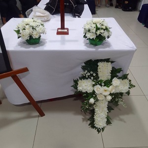 Langgeng Florist hadir menyediakan berbagai pilihan bunga duka cita di Bekasi, mulai dari papan bunga, standing flower, bunga altar, salib, hingga krans bunga duka. Semua dirangkai dengan desain yang sopan, elegan, dan penuh empati.