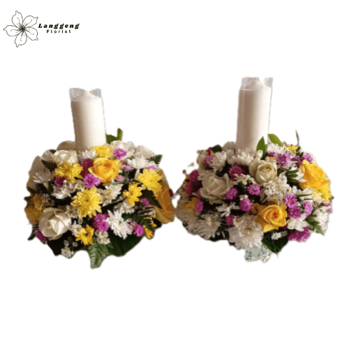 Dengan kombinasi warna kuning, putih, ungu, dan sedikit merah muda, bunga ini memberikan sentuhan damai, namun tidak muram — cocok untuk acara perpisahan yang tetap membawa harapan dan doa yang indah.