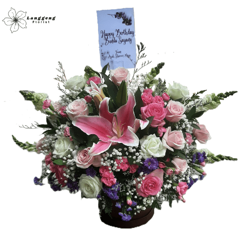 Tampil memukau dengan susunan lili pink besar, mawar ungu, dan campuran bunga kecil berwarna-warni, BX_06 adalah pilihan terbaik untuk memberikan kesan anggun, elegan, dan berkelas. Dikemas dalam box hitam glossy, produk ini cocok untuk momen formal seperti ucapan selamat, graduation, atau bahkan simbol penghargaan kepada kolega atau klien bisnis.