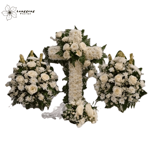 Berikan penghormatan terakhir yang bermakna dengan paket dekorasi bunga duka cita lengkap dari Langgeng Florist. Rangkaian ini terdiri dari satu Bunga salib dan dua bunga altar sebagai pendamping bunga tangan. Dengan nuansa serba putih, dekorasi ini mencerminkan ketulusan, kedamaian, dan doa yang lembut untuk almarhum maupun keluarga yang ditinggalkan.