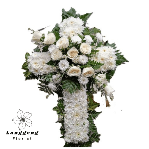 Standing Flower Salib sangat cocok untuk dikirim ke rumah duka, tempat ibadah, atau lokasi persemayaman sebagai bentuk penghormatan terakhir yang anggun. Komposisi bunga segar dikerjakan langsung oleh florist profesional Langgeng Florist dengan kualitas premium dan perhatian pada detail.